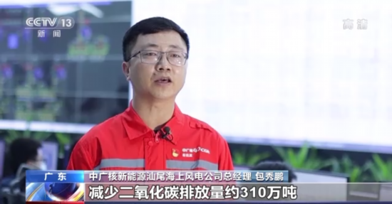 中广核新能源汕尾海上风电公司总经理 包秀鹏:中广核汕尾140万千瓦海上风电大基地全面建成投运,每年可提供清洁电能约40亿千瓦时,可等效节省标煤约127万吨,减少二氧化碳排放量约310万吨。