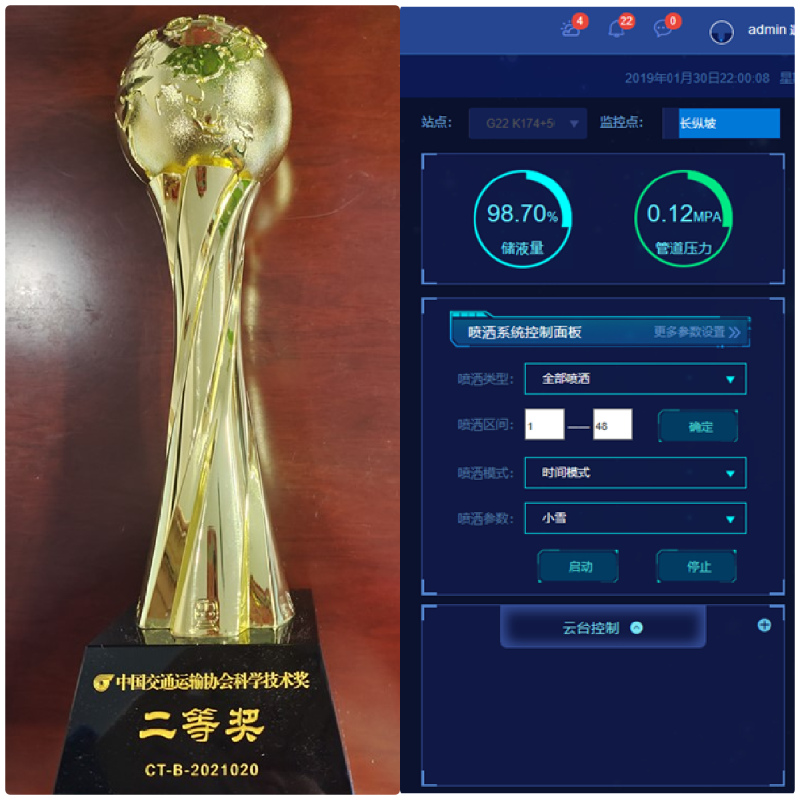 该项目利用云平台的大数据分析处理、物联网等技术,以交通气象大数据和热谱技术为基础,开展长江中下游地区桥面冰雪灾害智能预警处置技术研究,取得了多项创新性成果,包含研发桥面凝冰预警系统和精细化交通气象监测预警平台、珀耳帖效应元件的固-液相变材料主动式凝冰预警传感器、旋转变频式融雪剂智能喷洒终端——凝冰自动化处置系统。经专家组评定,该项目研究成果总体上达到国际先进水平,尤其是基于公路地理环境预测路面温度的系统及方法达到国际领先水平。