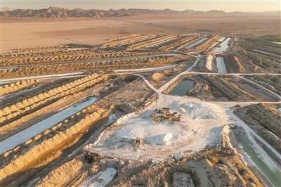 图为在美国加利福尼亚州莫哈韦沙漠的布里斯托尔湖提取锂。