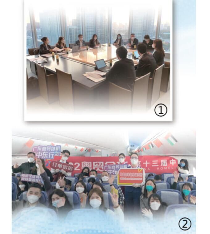 图②:12月17日,150多家广东外贸企业的负责人搭乘包机前往迪拜,参加第十三届中国(阿联酋)贸易博览会。