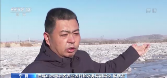 石嘴山市惠农区农业农村和水务局副局长 侯彦君:(封河点水位)涨了3米,气温再下降,这个水可能要涨到5米以上。(这里是)黄河水运过来以后把冰全部抬高,然后形成冰凌了。河道比较窄的地方,如果冰凌拥起来容易造成危险。