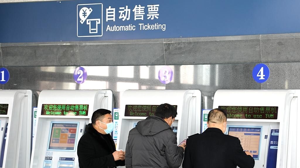 旅客在自助售票机上购买火车票。视觉中国 资料图