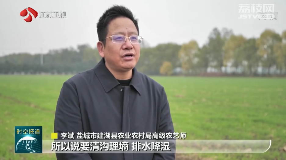 盐城市建湖县农业农村局高级农艺师李斌说:“目前田间湿度比较大,所以说要清沟理墒,排水降湿,以防产生渍害,加重冻害,基苗肥不足的田块要尽快补施肥料,促进苗情生长。”