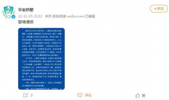 荔枝新闻讯 12月25日晚,@平安拱墅 微博发布一则“警情通报”。全文如下: