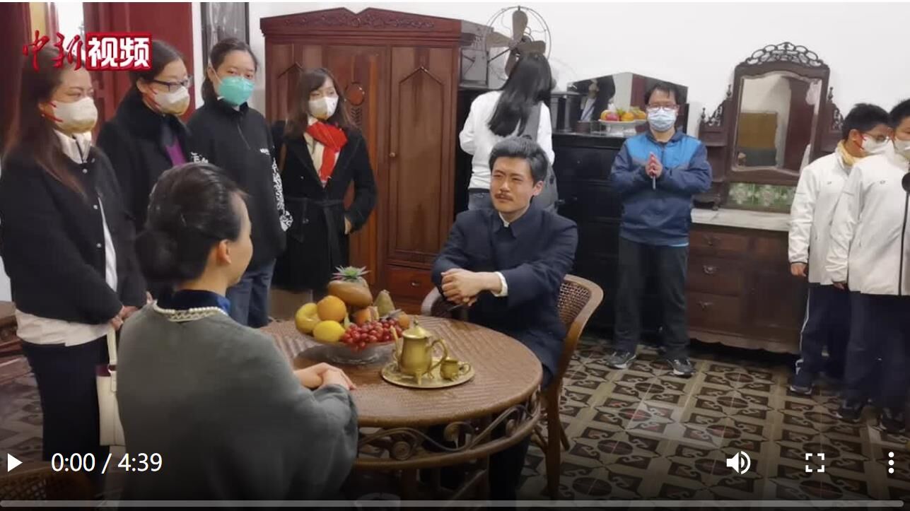 【解说】跟随演员的步伐,走进广州大元帅府,来自海峡两岸的十几位游客穿越回到孙中山先生所在的革命年代,与伟人们同台而坐,看革命志士唇枪舌剑,台湾同胞在孙中山与宋庆龄共同生活时间最长的场所里,感受动荡年代里的真实故事。