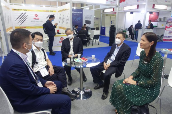浙江省外贸企业在阿联酋迪拜与采购商交流。(受访者供图)