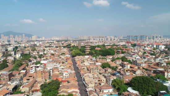 4月21日,市民在泉州市西街出行(无人机照片) 新华社福建分社 周义摄