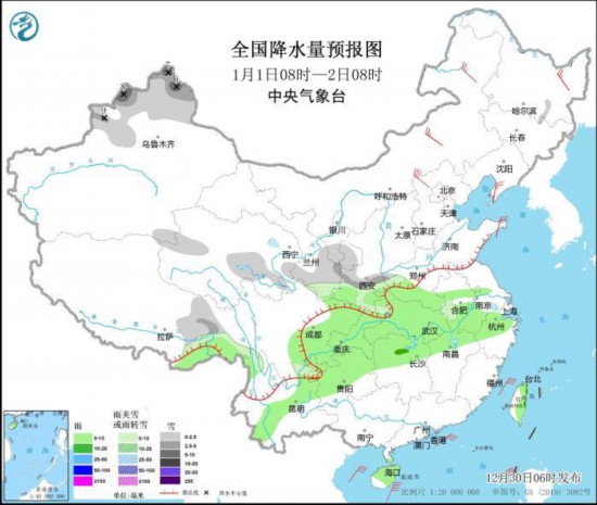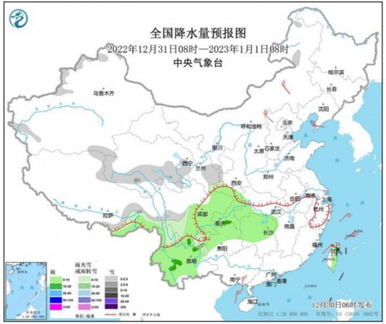 图1 全国降水量预报图(12月30日08时-31日08时)