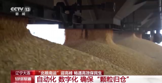 高峰时期,港内可实现一昼夜接卸300辆散粮车,卸车效率高达每小时1000吨。同时,大连港还通过“自动化”作业和“数字化”监管,确保粮食在港内中转过程中“颗粒归仓”。