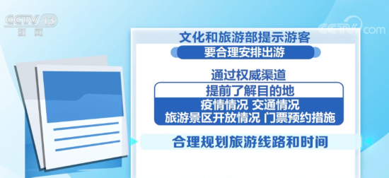 文化和旅游部日前发布元旦假期出游提示,提醒广大游客合理安排出游,通过权威渠道提前了解目的地疫情情况、交通情况、旅游景区开放情况、门票预约措施,合理规划旅游线路和时间。