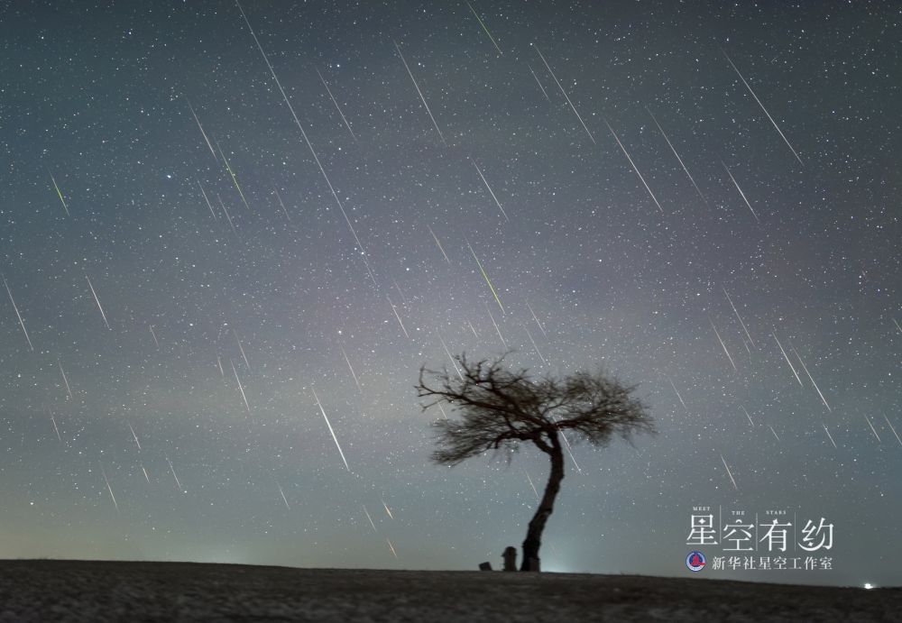 这是黑龙江省天文爱好者刘成山2022年1月4日在黑龙江省大庆市拍摄的象限仪座流星雨(多张叠加)。(本人供图)
