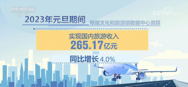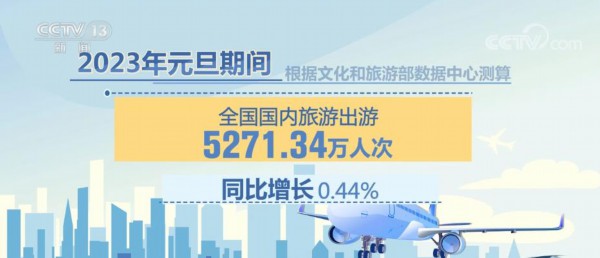 这个假期,全国文化和旅游假日市场总体安全平稳有序。根据文化和旅游部数据中心测算,2023年元旦期间,全国国内旅游出游5271.34万人次,同比增长0.44%,实现国内旅游收入265.17亿元,同比增长4.0%。