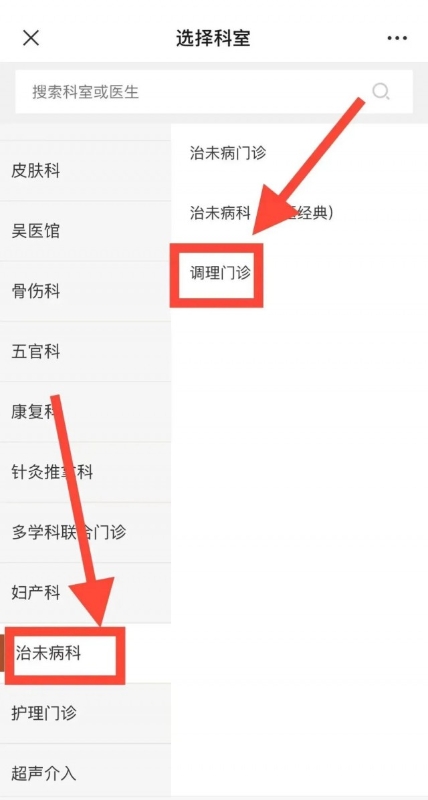 关注“苏州市吴江区中医医院服务号”,进入“就医服务”——“预约挂号”,选择“治未病科”——“调理门诊”。