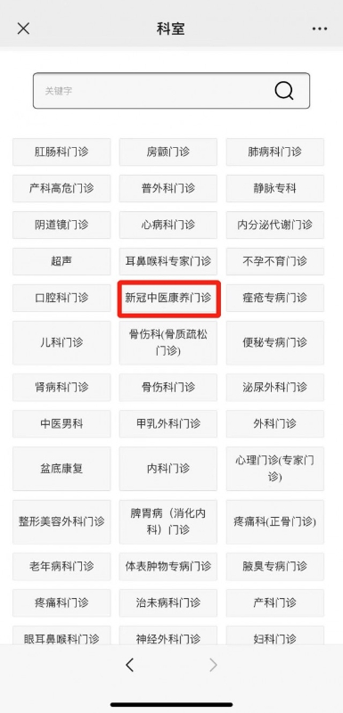 1、进行新冠康养(中医)治疗,请在挂号收费处挂中医内科。