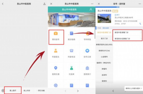 关注“昆山市中西医结合医院公众号”,进入服务中心--预约挂号--新冠中医康养门诊。