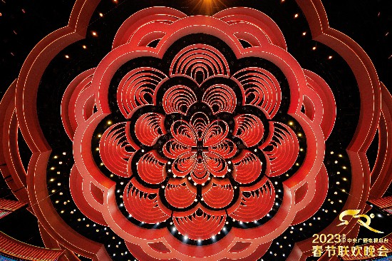 2023年春晚舞美设计体现“满庭芳”的理念,取意自中国古典文学词牌名,通过演播大厅多个方位的设计,共同营造祈愿圆“满”的中华大家“庭”尽展“芳”华的主题气象。其中,由四瓣花结构演化重构而成的演播厅顶部艺术装置,既是根植于中华文明的美学创造,又是绽放着现代设计理念的创新呈现。创意取材自距今6000年至4800年前的庙底沟彩陶标志性的“花瓣纹”,著名考古学家苏秉琦先生曾提出:花卉图案彩陶,可能就是华族(即华夏民族)得名的由来。