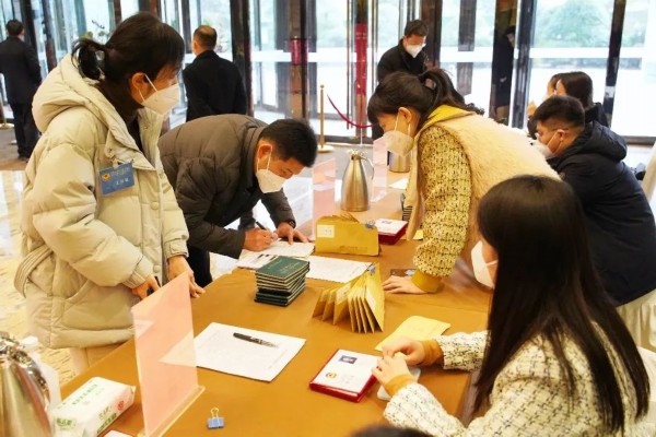报到现场,市政协委员们在工作人员的引导下有序进入大厅签到、领取会议材料,报到现场气氛热烈、秩序井然。