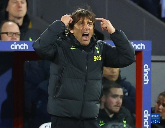 1月4日,热刺队主教练孔蒂在场边指挥队员。新华社/路透