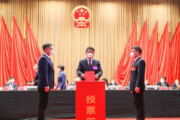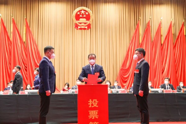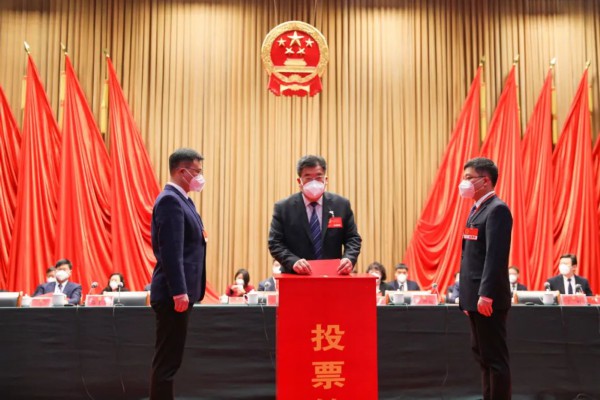 会议依照法定程序进行大会选举,与会人员认真填写选票,向投票箱中投上自己庄严神圣的一票。