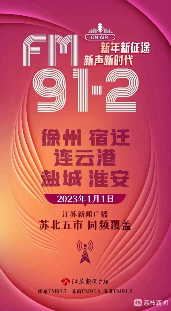 新年新征途,新声新时代。2023年1月1日起,江苏新闻广播苏北地区频点FM91.2正式启用,苏北五市宿迁、淮安、盐城、连云港、徐州实现统一频点,同频共振。