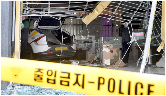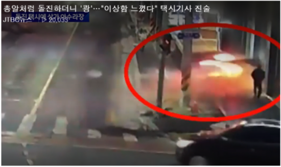 出租车飞速冲进金店的一瞬间。 图源:JTBC报道截图