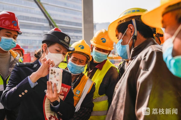 在春运首日,为让辖区农民工安全返乡,过上一个祥和的春节,南京南站派出所还组织宣传小分队深入辖区工地,开展“墨香染‘枫’红,温暖回家路”春运安全宣传活动,通过现场讲解知识、答疑解惑、亲手演示等方式,向广大工友讲解防范新型诈骗手段知识和解答春运中常见的乘车疑难问题,最让他们关心的还是民警精心准备的“抢票”小知识。通过此次宣传和提醒让工友们在途中提高防骗防范意识,确保安全出行。