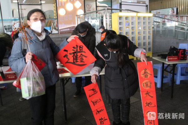 活动现场,工作人员为乘客送春联、送“福”字,让旅客的春运旅途充满浓浓“年味”。工作人员一边将福字、对联送到旅客手中,一边向旅客道上问候与祝福。收到礼物的旅客们纷纷拿起福字和对联拍照留念,再小心翼翼地收好“福”字准备带回家。