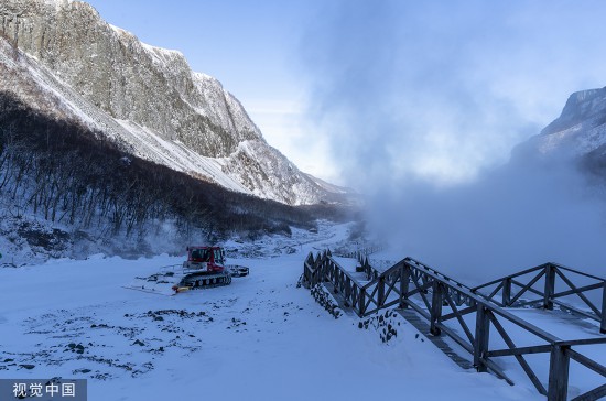 冬季的长白山被白雪覆盖,温泉上空升腾起雾气。人民视觉 资料图