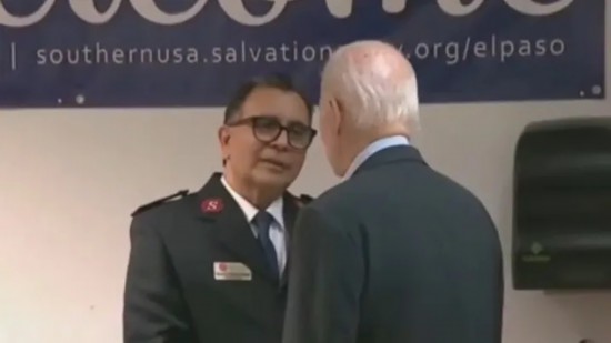 报道称,8日当天拜登来到了得克萨斯州的埃尔帕索,与当地的边境巡逻人员交谈,沿着隔开得州和墨西哥的边境高墙视察,并参观了一个移民中心。参观期间,一名女士对他介绍,“这里有救世军的人”。随后,拜登便走到一个身穿制服的男子面前,跟他握手说,“我在波兰和乌克兰时曾在特勤局待过一段时间”。