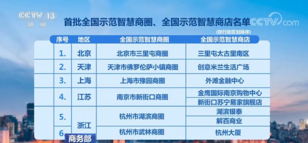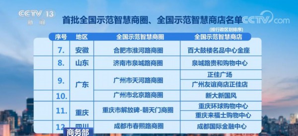 央视网消息:商务部近日确定了首批12个全国示范智慧商圈和16个全国示范智慧商店。
