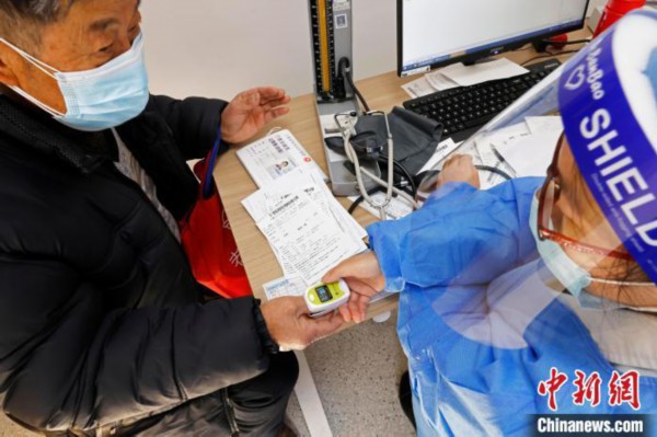 医护人员为市民进行氧饱和度检测。 殷立勤 摄