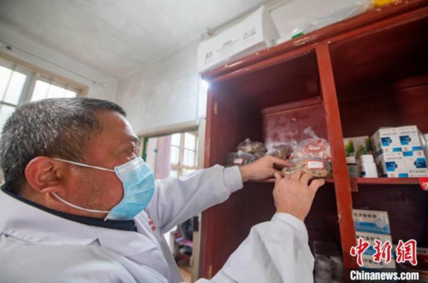 村卫生员在卫生室准备中药与县乡医务人员及村干上门开展巡诊服务。 吴德军 摄