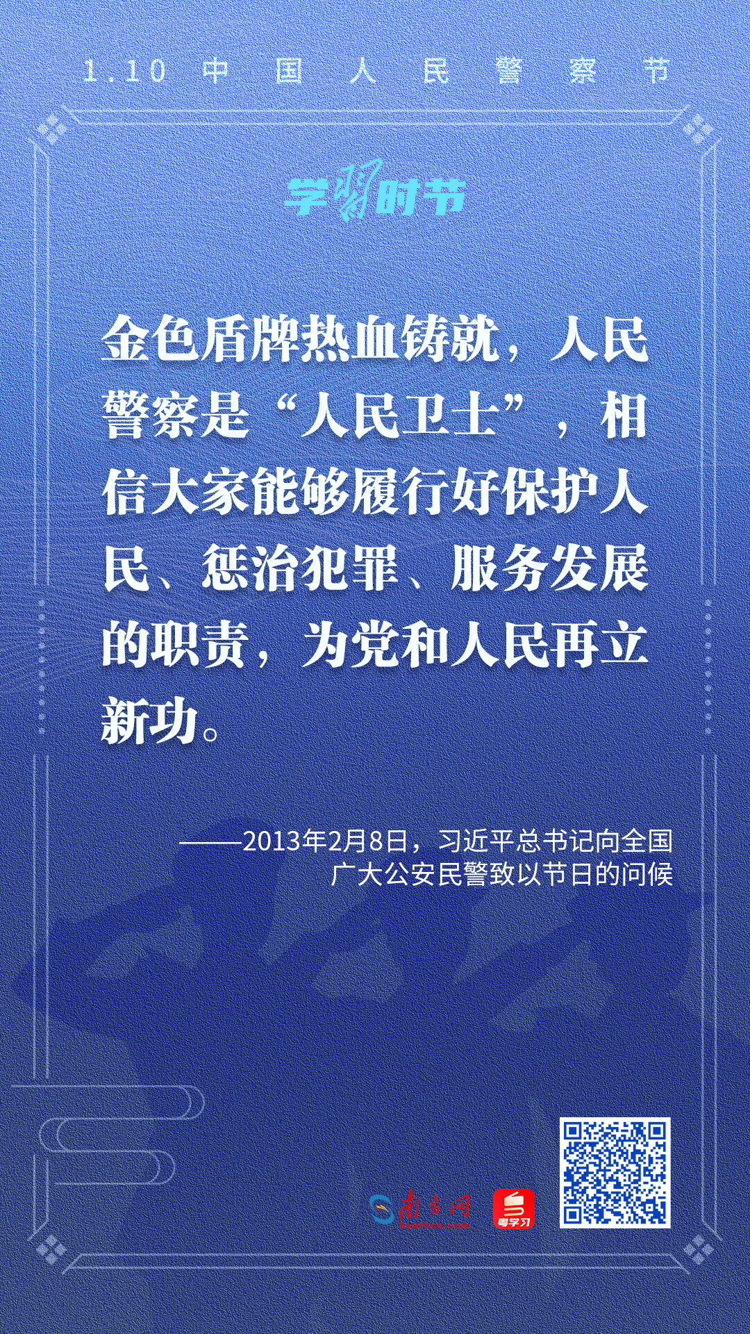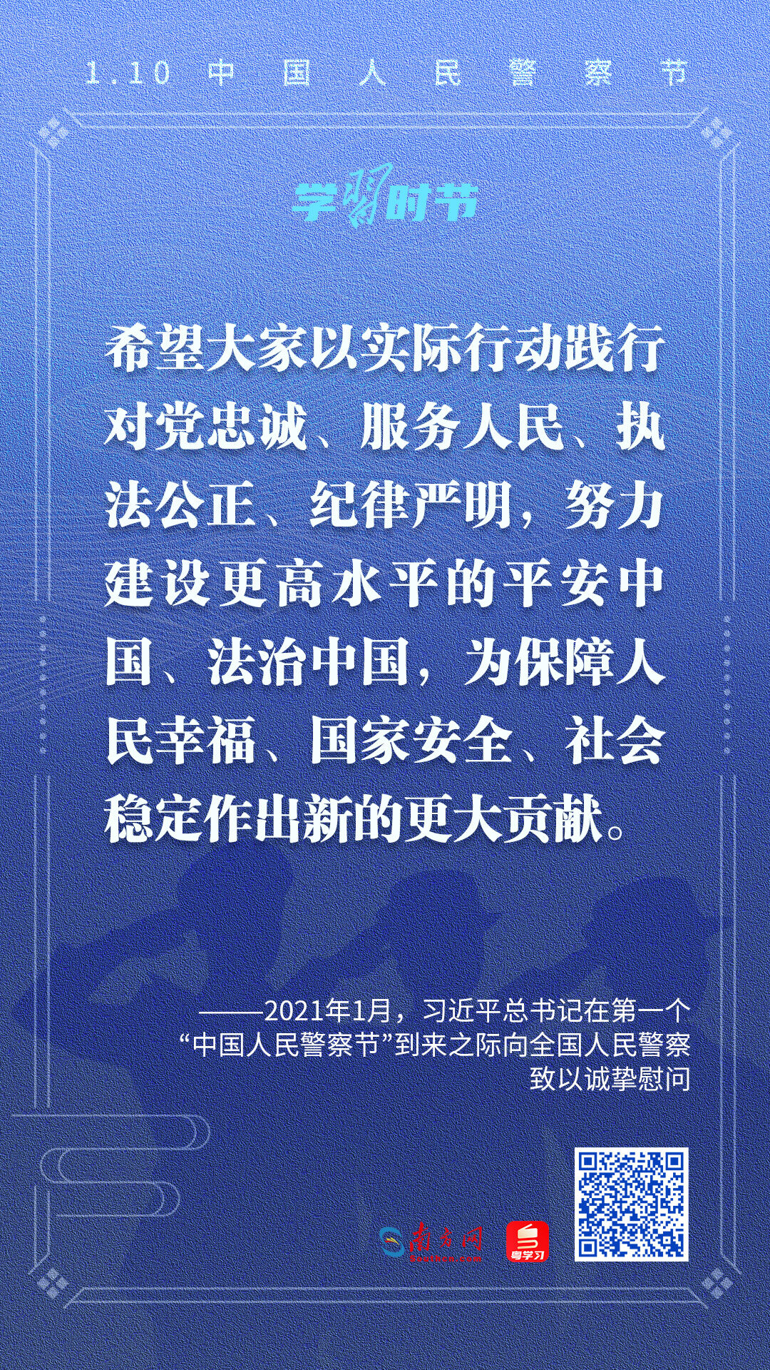 今天(1月10日)是第三个“中国人民警察节”,让我们通过一组海报,一起重温习近平总书记的重要论述,致敬人民警察,共同为建设更高水平的平安中国、法治中国贡献一份力量。