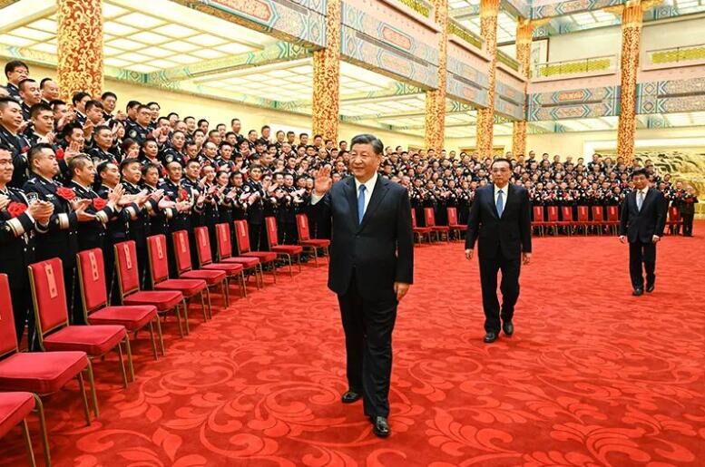 2022年5月25日,习近平在北京人民大会堂会见全国公安系统英雄模范立功集体表彰大会代表。 新华社记者 李学仁 摄