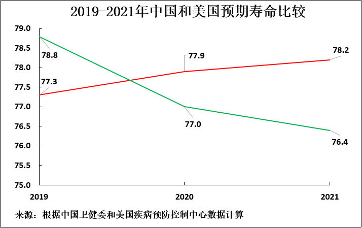 图2:2019-2021年中国和美国预期寿命比较
