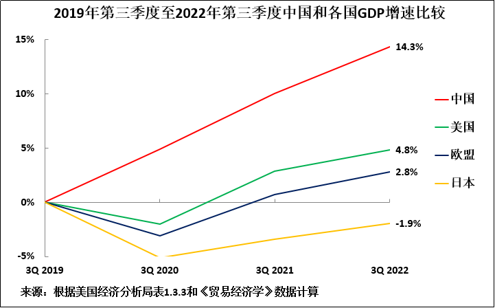 图3:2019年第三季度至2022年第三季度中国和各国GDP增速比较