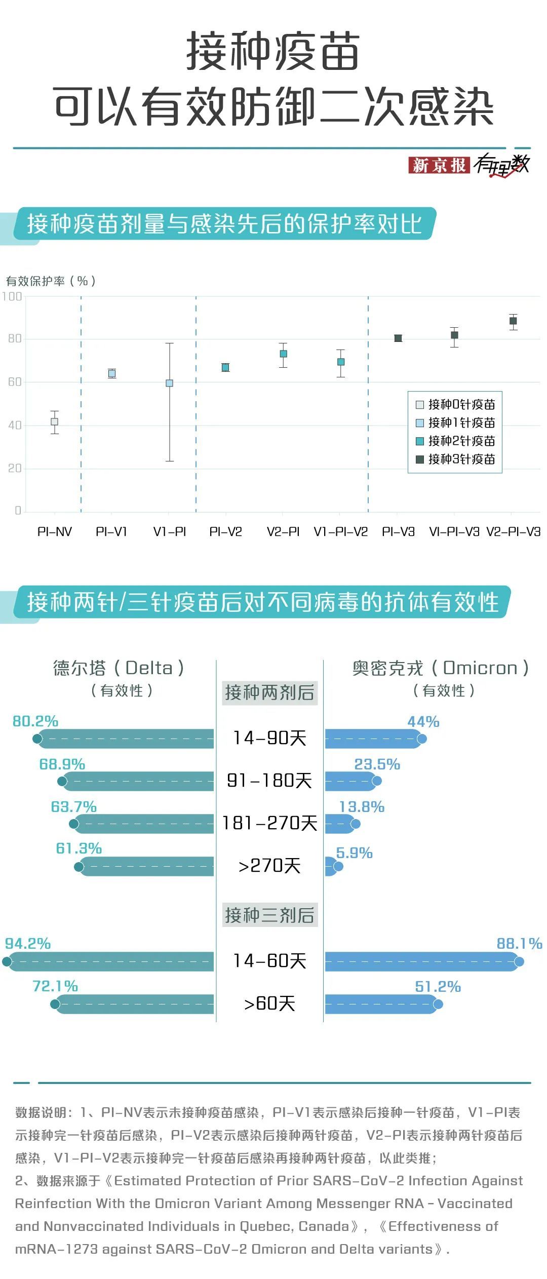 而且在已知接种过疫苗的人群中,接种剂数越多,二次感染风险越低。