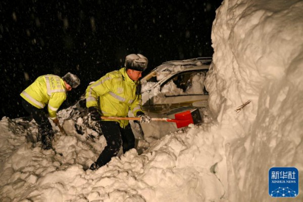 ↑这是1月8日拍摄的一处风雪救援现场。