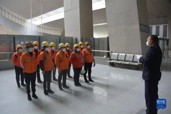 1月9日,厦门北站的给水员班组在交接班前点名。新华社记者 颜之宏 摄