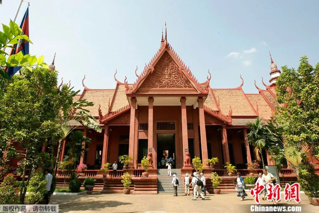 资料图:外国游客在柬埔寨金边的一家博物馆参观。