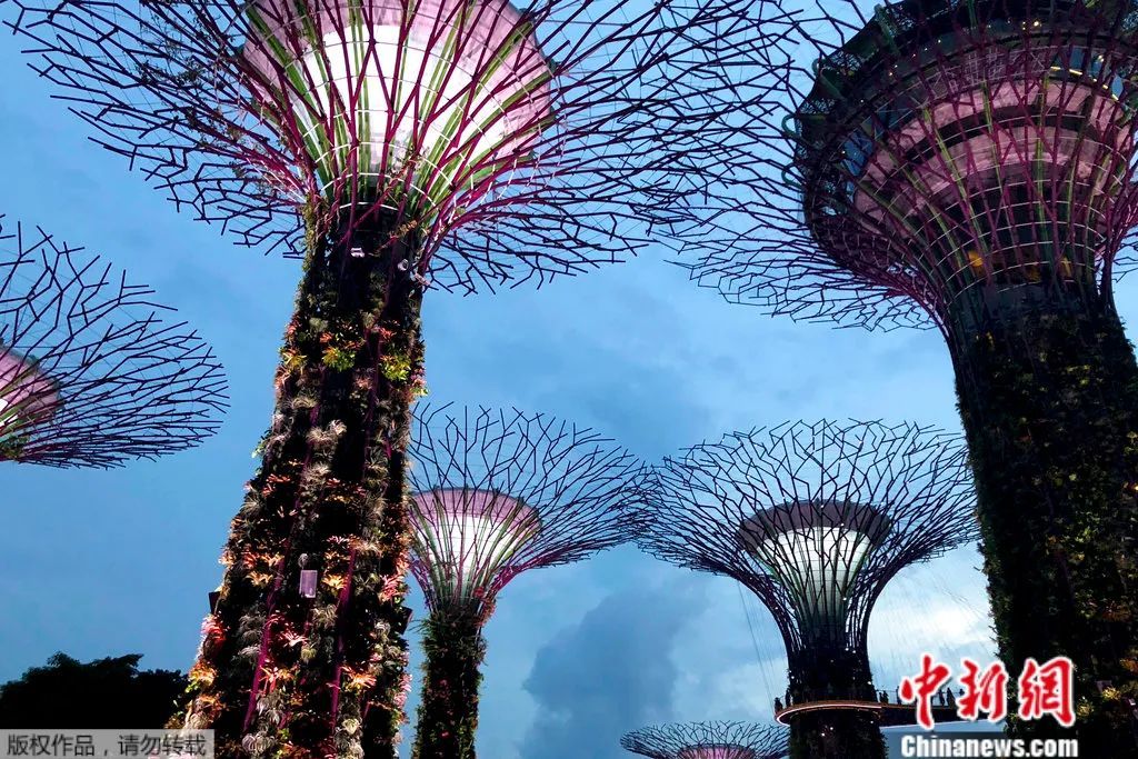 资料图:黄昏时分,新加坡滨海湾花园。