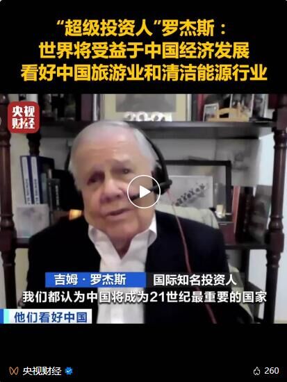 财经中心记者通过视频连线的形式,专访著名投资人吉姆·罗杰斯。他表示,中国将成为21世纪最重要的国家,更强大的中国能助力世界经济增长,他尤其看好中国旅游业和清洁能源行业的发展。