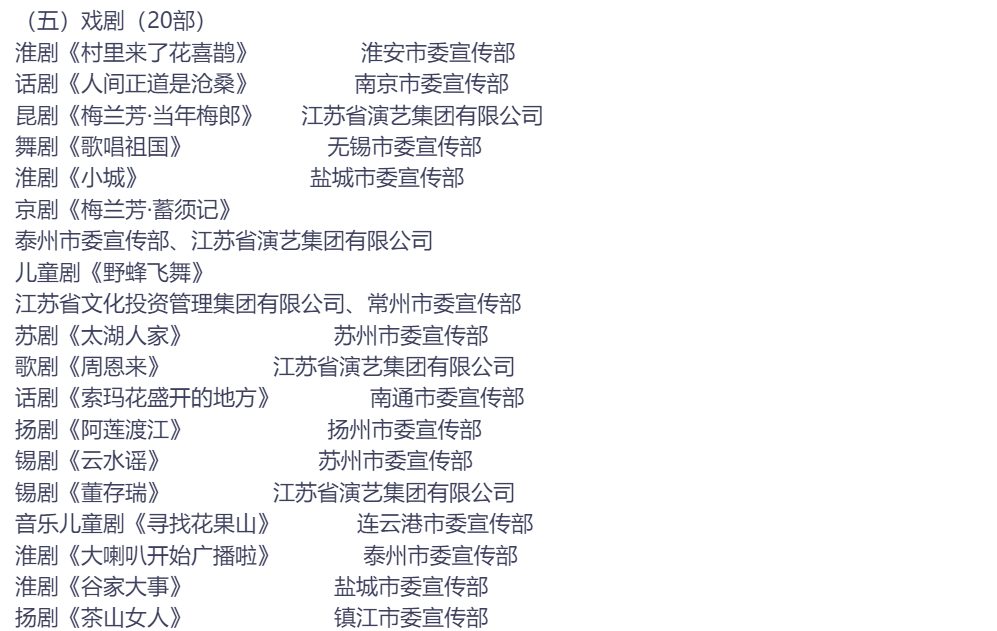 当前,江苏文艺按照省第十四次党代会关于“深入推进文化强省建设”部署要求,实施文艺作品质量提升工程,着力打造全国领先的创作生产体系,培养造就一批德艺双馨名家大师,努力推出更多彰显江苏精神、时代气象的扛鼎之作,构筑新时代江苏文化艺术高峰,以实际行动和丰硕成果助力社会主义文化强国先行区建设。