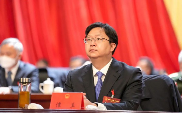 ▲ 市委副书记、市长谭真在大会主席台就坐