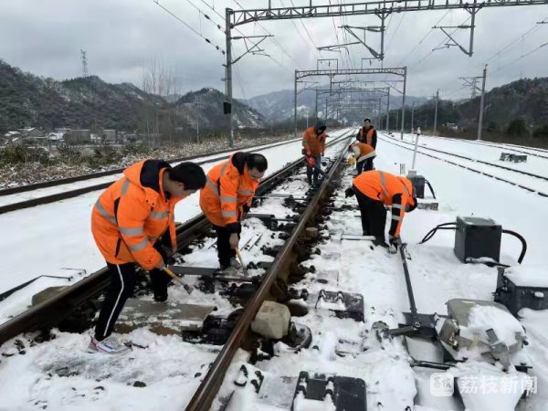 线路的安全畅通关系到铁路运输秩序和旅客出行的安全。长三角铁路及时掌握降雪影响范围,于14日22时47分发布调度命令,启动二级扫雪除冰应急响应,对沪蓉铁路合肥南至墩义堂间、京港高铁芦庙至阜阳西间、京沪高铁蚌埠南到徐州东组织限速运行;后续将密切关注降雪区域、时段和降雪等级变化,动态调整列车开行方案,确保旅客出行安全。蚌埠、合肥、南京等地铁路单位明确扫雪区域包保人员、联系方式等,及时实施站区扫雪保畅通预案。 在皖南,芜湖车务段针对管内降雪情况,及时组织芜湖站职工成立扫雪突击队,分赴现场开展扫雪除冰。