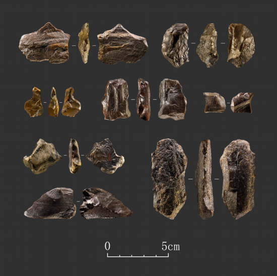 “目前为止出土的各类石制品和动物化石已有近千件。”郑喆轩介绍,这些石器包括了石核、石片、刮削器、尖状器等典型的旧石器时代遗物。动物化石(包括动物骨骼和牙齿)则比较破碎,仅部分可鉴别出种属。此外,现场还发现了较多保存较好的植物类材料。它们为研究人员还原远古人类的生活场景提供了宝贵资料。整体而言,遗址遗存丰富,石制品、化石较多,植物类遗存在旧石器时代遗址中得以大量保存非常重要 ,尤其值得一提的是,遗址还发现了疑似骨器和木器,这在旧石器遗址中也不多见。
