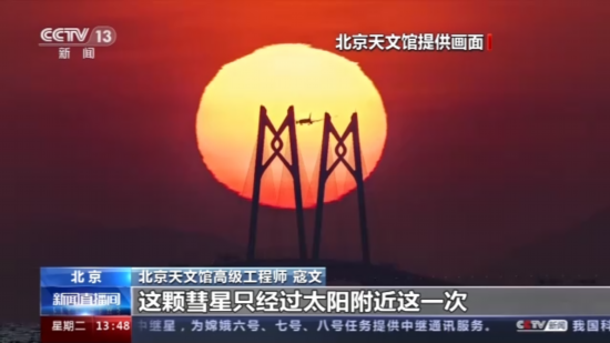 北京天文馆高级工程师 寇文:从现在它的轨道来看,不应该是五万年一遇。应该只经过太阳附近这一次,以后不会再回来了。