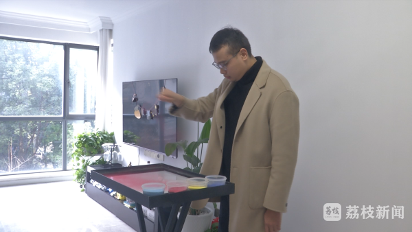 张庆恒从2012年开始自学沙画,为了将沙画与国风元素相融合,他做了不少功课。“我觉得最难的在于表现敦煌飞天飘逸的状态,所以说我在网上查找了很多资料,比如说她们的一个服饰,朝着哪个地方去挥动,还有她的一些动作,比如手臂朝着哪一个方向,还有她高低错落的状态,这些东西都要细致刻画出来。”张庆恒介绍。而为了表现出太极拳的刚柔相济,张庆恒除了搜集查阅相关资料外,还特意起大早,向晨练的大爷大妈请教,希望通过这幅沙画作品,祝大家新年快乐、兔年大吉。