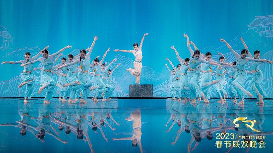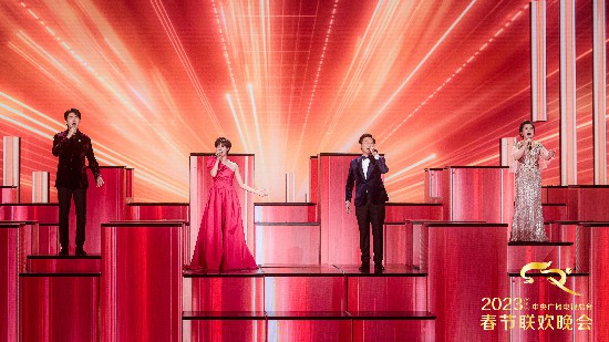 秉持“思想+艺术+技术”的融合传播理念,2023年总台春晚从中华优秀传统文化中,从真实生活中,从世界各国璀璨的文明中攫取元素,辅之以现代艺术手法和光影技术,创新演绎音乐、舞蹈、武术等多样态题材内容。