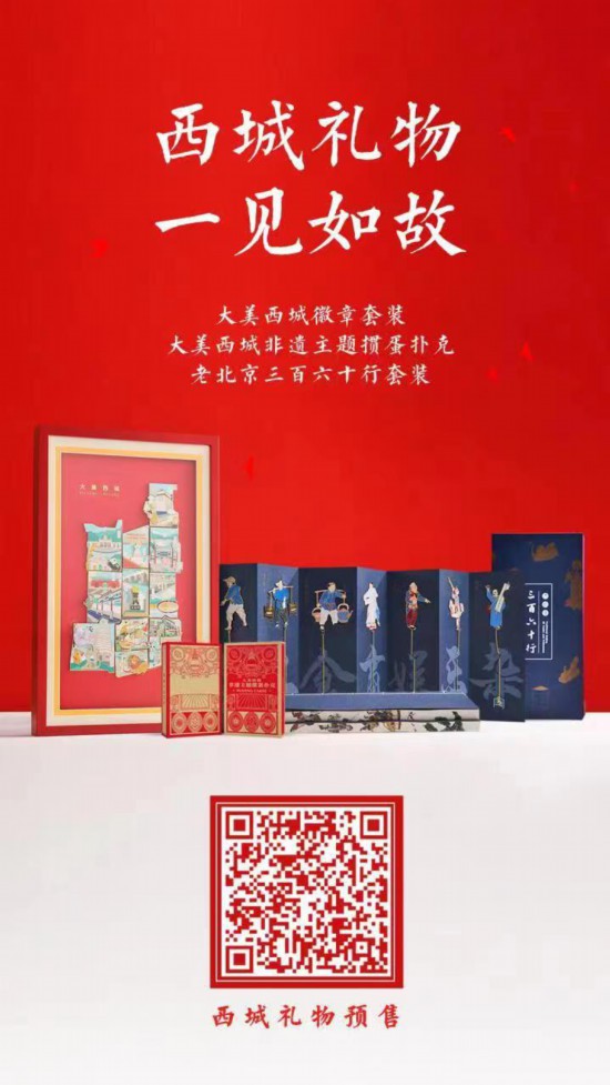 为了展示西城区作为文化大区的文化内涵,彰显对外交往的能力特质,“西城礼物”由西城区政府发起,辖区上市文化公司元隆雅图的数十位设计师历时三个多月,围绕西城的人文、历史、风俗等元素反复推敲设计而成。值此新春佳节之际,为广大市民献上新春的文化祝福,扫描二维码即可线上下单,足不出户选购心仪的“西城礼物”。